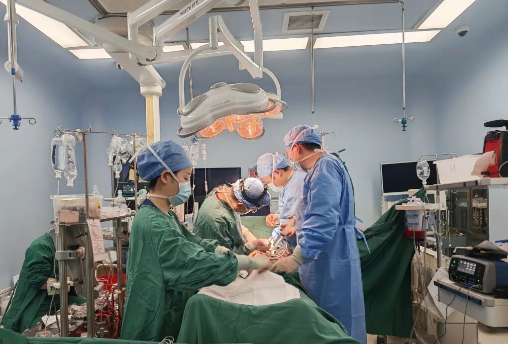 “立即開胸,準(zhǔn)備手術(shù)!”1月12日上午十時,第一例患者確診后,胸心外科廖志敏主任當(dāng)機立斷。麻醉科、手術(shù)室、體外循環(huán)科、重癥醫(yī)學(xué)科等多學(xué)科團隊迅速集結(jié),術(shù)前評估、麻醉誘導(dǎo)、器械準(zhǔn)備、體外循環(huán)建立等各項工作同步高效推進。手術(shù)臺上,廖志敏帶領(lǐng)團隊精細分離血管、置換病變主動脈、修復(fù)撕裂內(nèi)膜,步步驚心卻精準(zhǔn)無誤;手術(shù)臺下,麻醉醫(yī)師嚴密監(jiān)控生命體征,器械護士默契配合,體外循環(huán)團隊精準(zhǔn)調(diào)控,后勤保障全程跟進。奮戰(zhàn)至當(dāng)日傍晚七時,患者轉(zhuǎn)危為安。