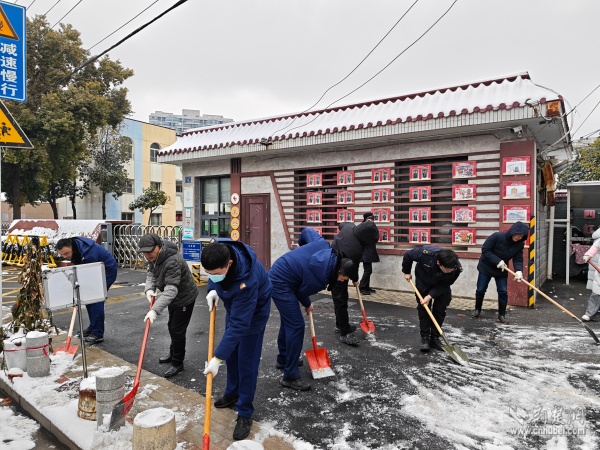 轄區(qū)文明單位積極行動,彰顯社會責任。黃鶴樓公園管理處、辛亥革命博物院領導班子帶隊鏟雪除冰,保障游客安全游覽;武漢大學人民醫(yī)院黨委書記、院長與干部職工一同清掃院區(qū)積雪,確?;颊呔歪t(yī)暢通;武漢市第三醫(yī)院領導干部聯(lián)合武昌區(qū)九三學社三醫(yī)院支社社員開展鏟雪行動,筑牢患者就醫(yī)安全防線;聯(lián)通武昌區(qū)分公司組織清除辦公樓及周邊道路積雪;中國郵政武昌區(qū)分公司各網(wǎng)點員工利用營業(yè)前后時間清掃門前冰雪,鋪設防滑墊、設立提示牌,為客戶開辟“安心通道”;七四三五工廠保衛(wèi)處以“雪停人動、人到雪清”的擔當,組織清掃廠區(qū)大門區(qū)域積雪,筑牢安全防線。