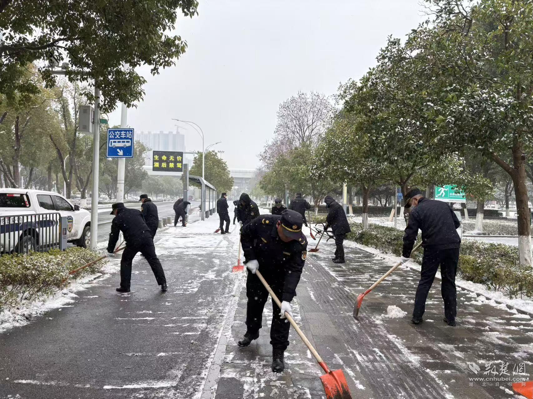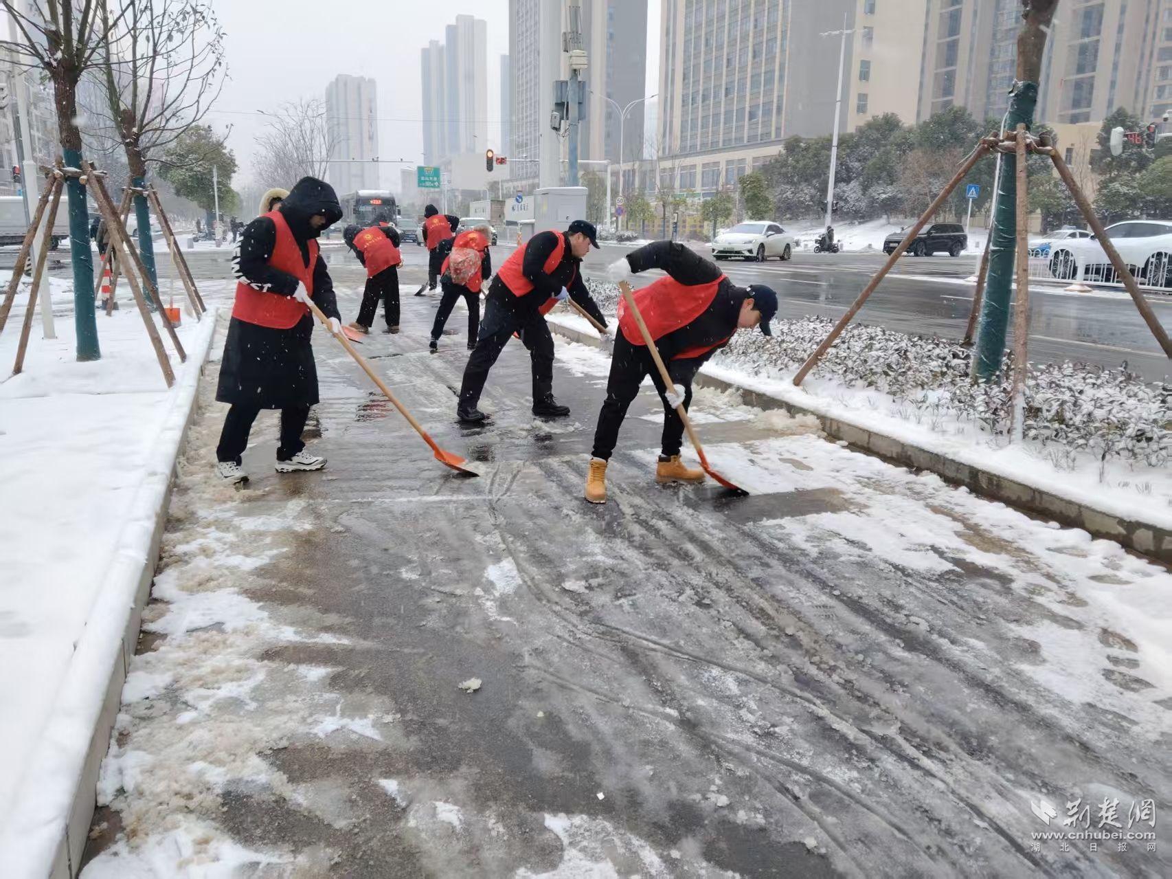 寒風(fēng)雖冷,熱情不減。鐵鍬鏟冰聲、掃帚掃地聲格外清晰。湖北廣電的老黨員張??钙痂F鍬,帶頭干起來(lái)?!拔覀冏ゾo鏟!路通了,大家上班、上學(xué)、買(mǎi)菜才安心?!彼吀蛇呎f(shuō)。家住二十四城的居民尹作意也不甘示弱,三葉士林的青年職工劉貝表示:“能為大家出把力,心里暖和?!痹谏鐓^(qū)書(shū)記潘飛飛的帶領(lǐng)下,大家3個(gè)小時(shí)連續(xù)作戰(zhàn),成功清除了沿線3公里人行道的積雪。