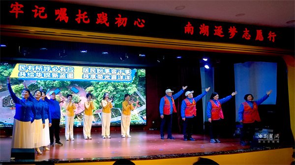 活動中,取材于寧松社區(qū)真實(shí)故事的情景劇《南湖暖陽》,藝術(shù)再現(xiàn)了鄰里互助的溫情日常;華錦社區(qū)自編自導(dǎo)自演的情景劇《華錦“民”星,微光閃亮》,將社區(qū)“民星”們植綠煥新、熱心服務(wù)的點(diǎn)滴故事搬上舞臺,生動詮釋了“微光”的力量;水域天際社區(qū)的詩朗誦《以志愿之名書青春華章》,配合著志愿者從舞臺各處匯聚而來的精心設(shè)計(jì),寓意著志愿服務(wù)精神在南湖遍地開花……這些源自生活、貼近民心的節(jié)目,不僅豐富了風(fēng)采展的形式,更讓感動人心的力量在藝術(shù)的共鳴中得以升華和傳遞。