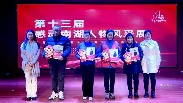 風(fēng)采展上,12位(個(gè))感動(dòng)人物(團(tuán)體)分批上臺(tái)接受紀(jì)念相冊(cè)。他們中,有退休仍發(fā)光發(fā)熱的老黨員,有緊急送藥的外賣小哥,還有義務(wù)辦學(xué)服務(wù)老人的社區(qū)大學(xué)校長(zhǎng)等。他們崗位平凡,卻用善舉傳遞溫暖,初心赤誠(chéng),點(diǎn)亮南湖向善之光。