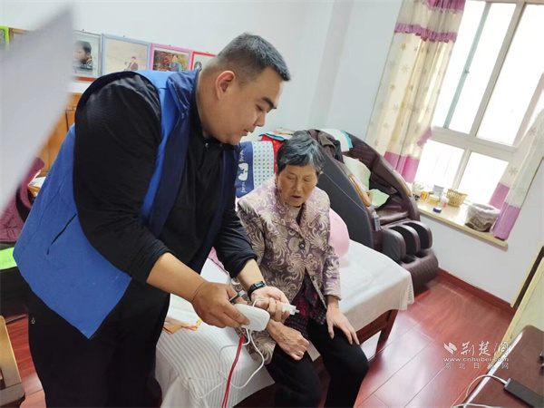 網(wǎng)格員為獨(dú)居老人排查用電安全隱患。 通訊員供圖