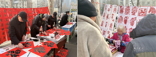 同一時(shí)間,在四美塘社區(qū),大紅的春聯(lián)紙、精致的剪紙作品與濃郁的墨香交織,勾勒出吉祥喜慶的新春圖景。武昌區(qū)社區(qū)教育學(xué)院楊園街分校的教師和學(xué)員們布置了書法創(chuàng)作區(qū)、剪紙展示區(qū),吸引眾多居民駐足觀賞。在書法創(chuàng)作區(qū),居民主動(dòng)參與書寫體驗(yàn),在老師的指導(dǎo)下親手描繪新春祝福。在剪紙區(qū),精美的作品整齊陳列,居民們登記后即可領(lǐng)取,將這份獨(dú)特的新春祝福帶回家。
