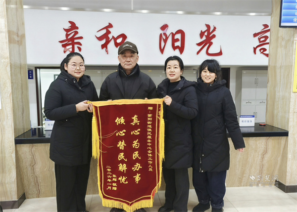張先生向紫陽街道便民服務(wù)中心工作人員送上錦旗。 通訊員供圖
