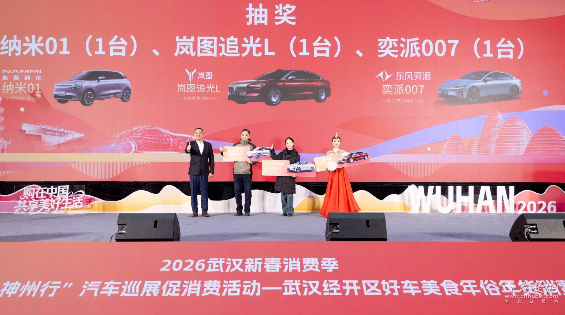 3位幸運(yùn)市民現(xiàn)場抽走“武漢造”汽車一年免費(fèi)使用權(quán)。通訊員供圖