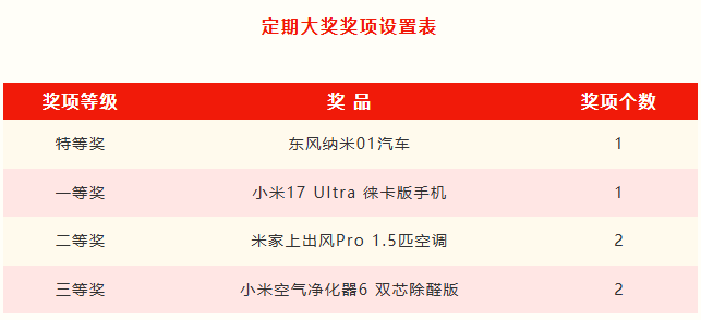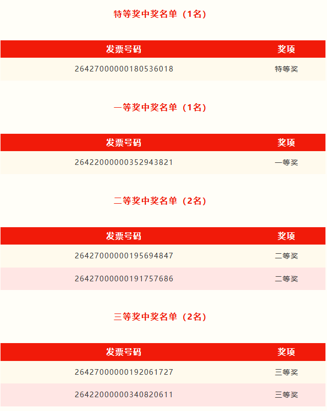 第一期定期開獎范圍為1月24日至2月2日期間開具并驗證合格參與即開即獎的數(shù)電發(fā)票。定期開獎采取實物獎品方式,共設(shè)有4個獎項等級。
