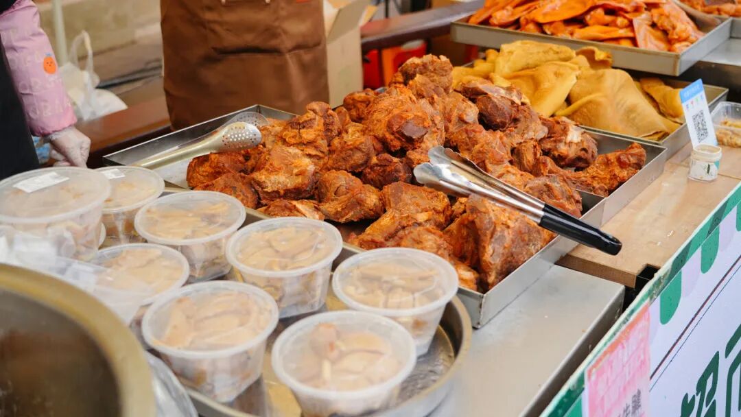 作為活動的重要組成部分,特色年貨市集“滿倉吉市”匯集了滿滿的煙火氣與本土特色。黃陂三鮮、鴨子煲、清湯鵝等地道美食香氣四溢,喚醒味蕾記憶。本地農(nóng)產(chǎn)品等特色攤位也一字排開,好不熱鬧。朝陽村的豆絲攤位前早早排起了長隊。朝陽村黨支部書記、村委會主任熊偉介紹:“今天我們準(zhǔn)備了200斤米漿,現(xiàn)場制作近千張豆絲免費供游客品嘗,既讓大家嘗到家鄉(xiāng)味,也帶動了村里油、土雞、糯米等農(nóng)副產(chǎn)品的銷售?!?/p>