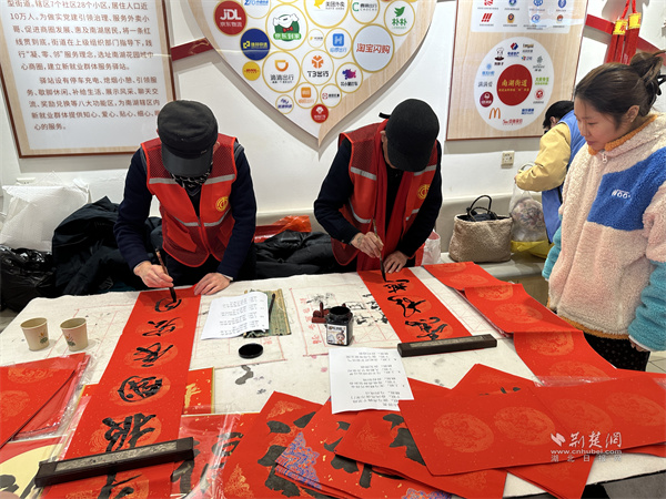 活動現場張燈結彩,福字、春聯(lián)相映成趣,處處洋溢著喜慶祥和的節(jié)日氣息。書法志愿者現場揮毫潑墨,一筆一畫寫下新春祝福,一幅幅寓意吉祥的春聯(lián)與福字深受大家喜愛,戶外勞動者們駐足欣賞、挑選心儀對聯(lián),在墨香中提前感受春節(jié)的儀式感。