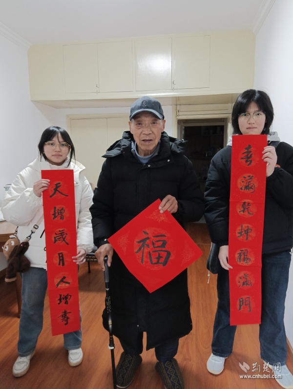 針對(duì)社區(qū)高齡、獨(dú)居老人,志愿者們開展“敲門行動(dòng)”,走進(jìn)“鶴耋安”重點(diǎn)關(guān)愛對(duì)象家中。在88歲的李奶奶家門口,志愿者們將一副寫有“福壽安康”的春聯(lián)認(rèn)真貼好,紅紙金字映亮了老人的笑臉?!澳銈円粊?lái),家里就熱鬧了,這春聯(lián)比買的還暖心!”李奶奶說(shuō)道。每到一戶,志愿者們都送上手寫春聯(lián)與“福”字,幫忙排查水電隱患,陪老人聊家常、憶往昔,用陪伴驅(qū)散冬日的冷清。