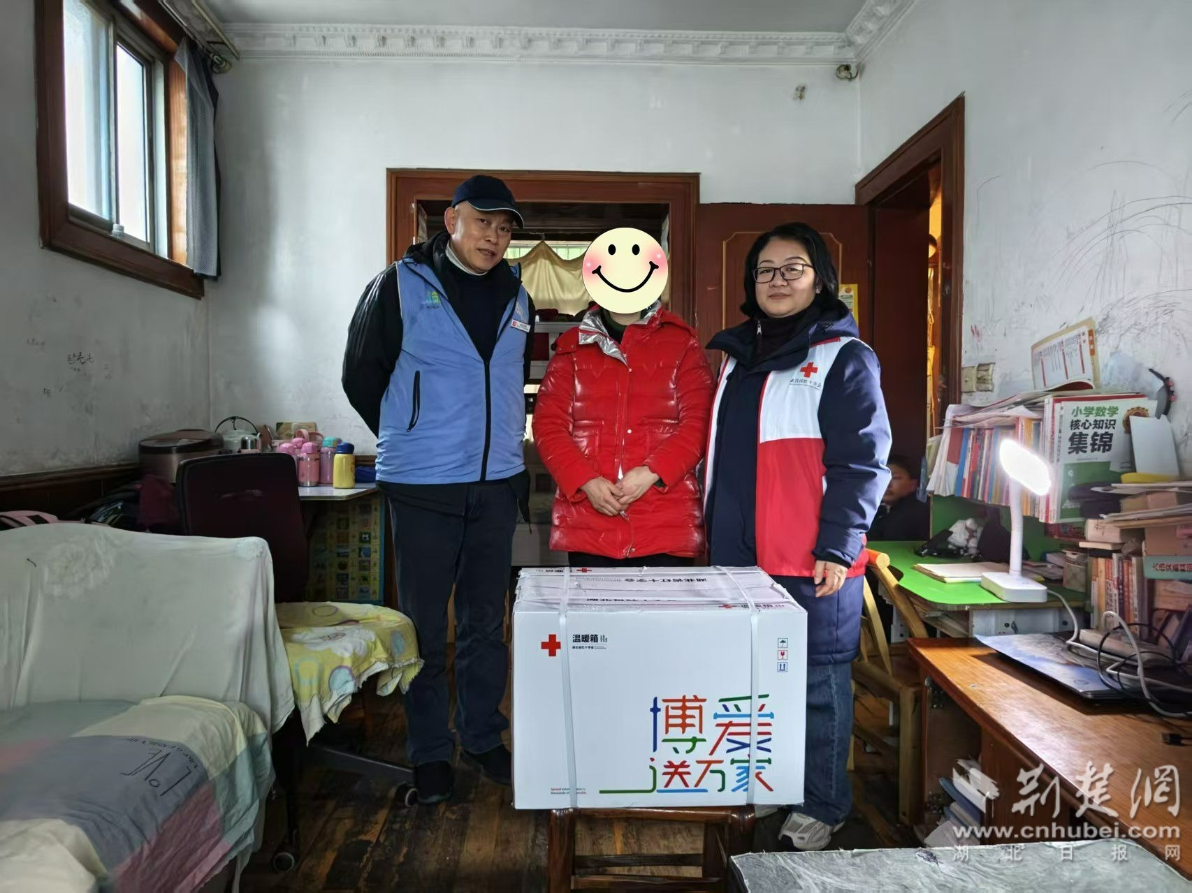 慰問過程中,紅十字志愿者和社區(qū)網(wǎng)格員為易先生家庭送上包含米油、保暖毯等慰問物資的“紅十字溫暖箱”,與其親切交談,詢問他們的身體狀況、家庭情況、日常起居及生活中遇到的實際困難,認真傾聽他們的訴求與心愿,詳細記錄生活需求,鼓勵他們保持樂觀積極的生活態(tài)度,勇敢面對生活挑戰(zhàn)。