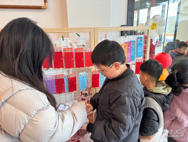 在詩(shī)詞接龍與成語競(jìng)猜環(huán)節(jié),孩子們引經(jīng)據(jù)典、對(duì)答如流,從唐詩(shī)宋詞的婉約豪放到成語典故的博大精深,一句句經(jīng)典在稚嫩的童聲中流淌,國(guó)學(xué)文化的種子也在孩子們心中悄然生根。猜燈謎環(huán)節(jié),一個(gè)個(gè)巧妙融入文學(xué)知識(shí)的謎面,引得孩子們或凝神思索,或歡呼雀躍。射福套圈等趣味游戲更是讓歡聲笑語灑滿書房,孩子們?cè)谟螒蛑懈惺軅鹘y(tǒng)民俗的獨(dú)特魅力,也收獲了一份份承載祝福的小禮物。