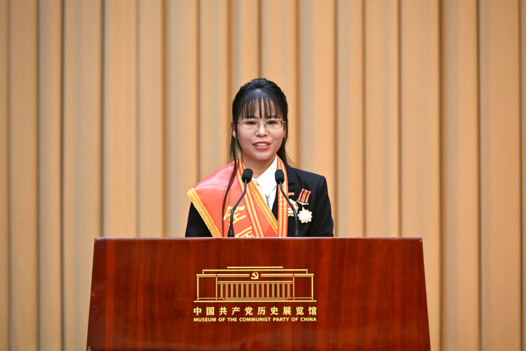 作為全國(guó)三八紅旗手代表上臺(tái)領(lǐng)獎(jiǎng)