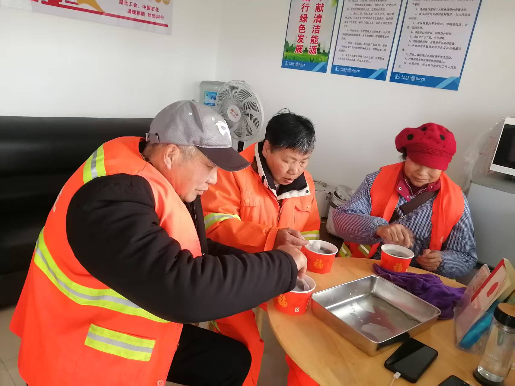 同樣的溫暖,也在應城開發(fā)區(qū)加能站“愛心驛站”傳遞。當日上午10時,剛結(jié)束早高峰路段清掃工作的環(huán)衛(wèi)工人受邀進站休息,該站的員工們熱情端上剛出鍋的湯圓,并準備好休息座椅和熱茶。