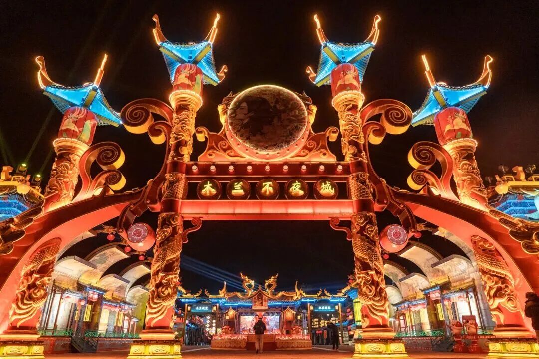 當(dāng)夜幕降臨,木蘭花鄉(xiāng)搖身一變,成為流光溢彩的“木蘭不夜城”。
