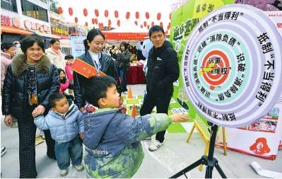 小朋友在太平人壽游戲區(qū)玩飛鏢轉(zhuǎn)盤游戲。