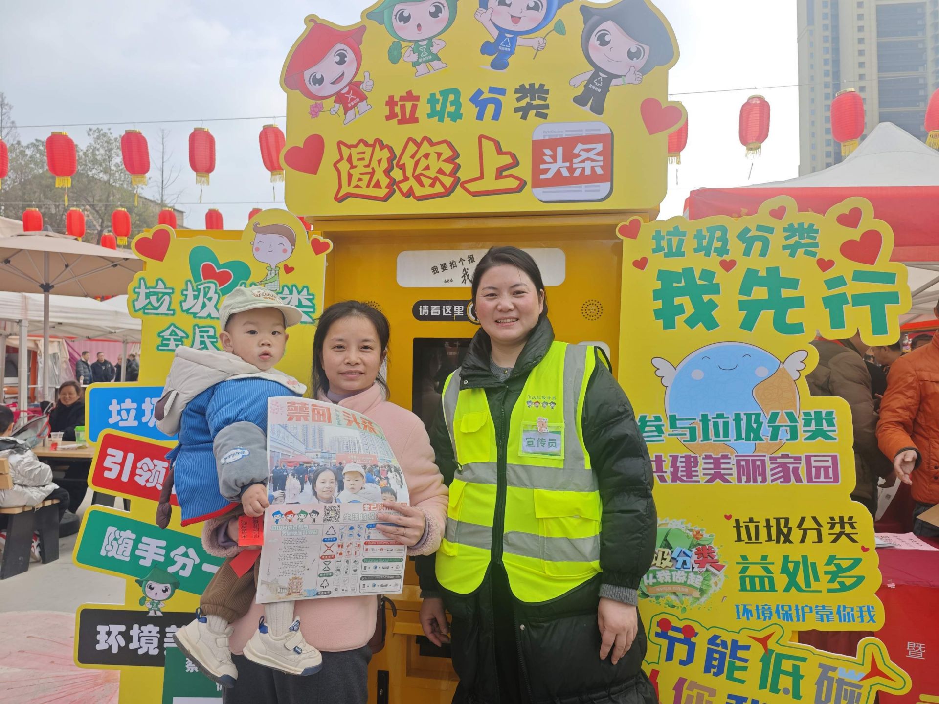 現(xiàn)場還設(shè)置文明實踐宣傳點,蔡甸區(qū)委宣傳部志愿者向居民發(fā)放文明餐桌、移風易俗宣傳冊。蔡甸區(qū)城市管理執(zhí)法局創(chuàng)新運用“AI文明拍報機”宣傳垃圾分類知識,引導(dǎo)居民踐行“武漢以我為榮”文明素養(yǎng)提升行動?!斑@個形式太有意思了,這份專屬的‘文明頭條’報紙,在趣味體驗中就深化了垃圾分類、文明公約等知識記憶?!睅е⒆訁⑴c的張女士興奮地展示著頭條報紙。