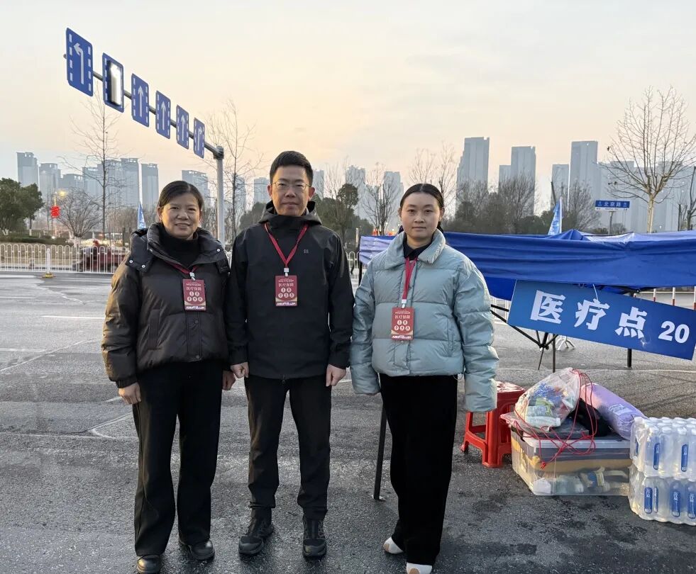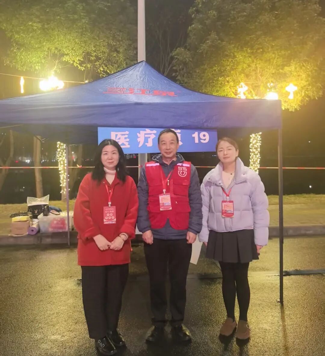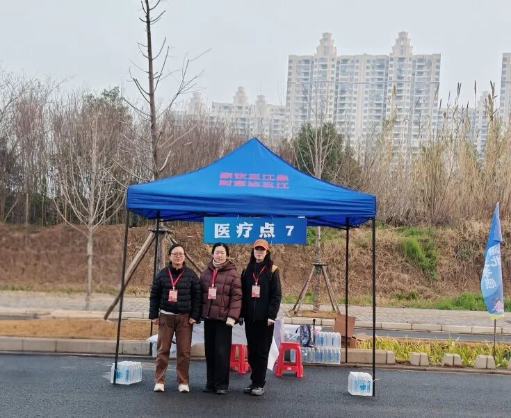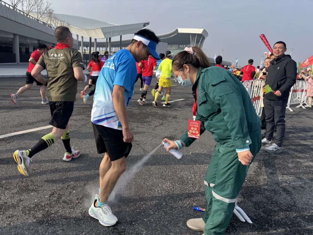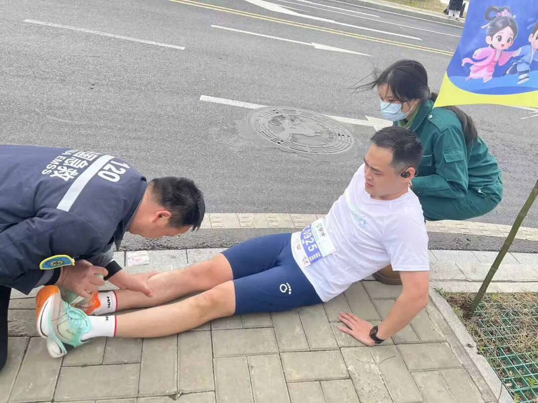 在12.5km處的醫(yī)療站點(diǎn),醫(yī)生陳杏和護(hù)士唐慧賢、祝敏的目光始終追隨著賽道上的每一個(gè)身影。這里是半程馬拉松的關(guān)鍵節(jié)點(diǎn),也是選手體能消耗的“預(yù)警區(qū)”?!坝信苷叱霈F(xiàn)腿部痙攣,需要處理!”三人迅速進(jìn)入狀態(tài),噴霧、按摩、補(bǔ)液……一套操作行云流水。