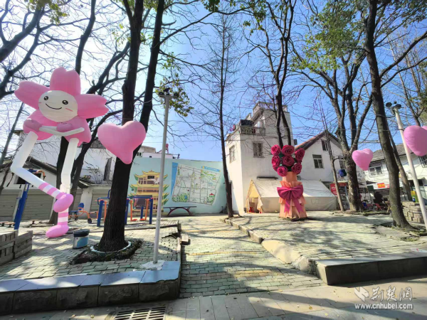 荊楚網(wǎng)(湖北日報網(wǎng))訊(通訊員 周俊芳 周佳穎)在武昌區(qū)黃鶴樓街道西廠口社區(qū)后宰門,一只巨型櫻花人偶氣?!白痹谙锟?,憨態(tài)可掬;抬眼望去,粉色愛心懸掛裝置隨風輕搖,與錯落有致的花箱綠植、墻上的黃鶴樓手繪、街區(qū)地圖墻繪交織成趣。跑者未至,春意已滿巷。這是社區(qū)為迎接2026年武漢馬拉松賽事精心布置的“見面禮”。