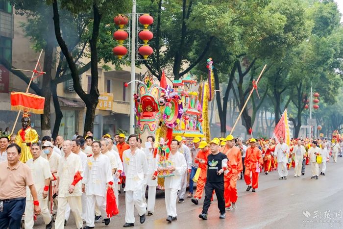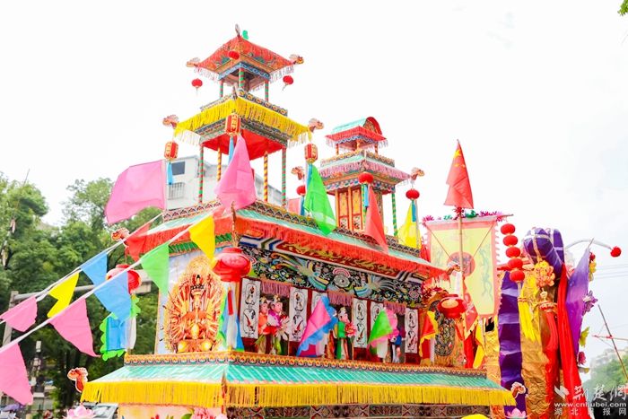 今年巡游的旱龍舟長(zhǎng)6米長(zhǎng)、有4.36米高,主要用竹篾扎制,由龍頭、中倉(cāng)、龍尾等組成,全舟分上中下三層,以“屈原”和“龍”為中心,72神像環(huán)繞。舟身下層有24名“水手”,象征著24個(gè)節(jié)氣;中層的12“花神”,代表一年12個(gè)月。每一具神像承載著澤林民眾的生活智慧以及祈福求祥的善良愿望。
