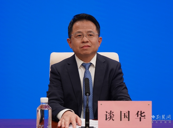 黃石市商務局黨組書記、局長談國華答記者問。金康 攝