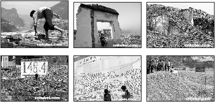 (圖1)西陵峽兵書寶劍峽口,村民正忙著蓋新樓房。 (圖2)一名兒童在已拆得面目全非的房屋前玩耍。 (圖3)奉節(jié)老城開濟(jì)門城墻如今只剩殘?jiān)珨啾凇?BR>(圖4)祖孫倆坐在云陽老縣城二期水位標(biāo)牌前。 (圖5)奉節(jié)縣居民在新縣城百米速寫畫墻上覓舊城蹤影。 (圖6)萬州老城最繁華的勝利街只留下了指示路牌。 ______________________________________________________