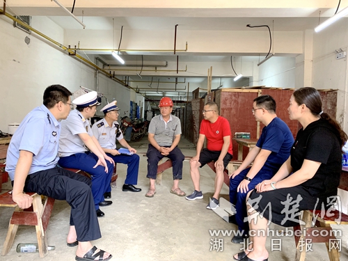 圖為執(zhí)法部門(mén)人員現(xiàn)場(chǎng)檢查辦公。 阮曉芬攝