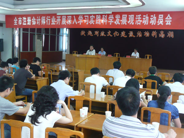 會(huì)上,市注冊(cè)會(huì)計(jì)師行業(yè)黨總支書(shū)記方曉同志宣讀了《關(guān)于全市注冊(cè)會(huì)計(jì)師行業(yè)開(kāi)展深入學(xué)習(xí)實(shí)踐科學(xué)發(fā)展觀活動(dòng)的實(shí)施方案》。市內(nèi)7家會(huì)計(jì)師事務(wù)所的黨員及非黨員員工約80多人參加了會(huì)議。