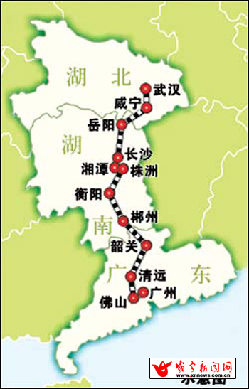 據(jù)了解,為滿足旅客的出行需求,沿線將新建21個火車站。武廣客運(yùn)專線建成后,高速列車最高運(yùn)行速度可達(dá)每小時350公里,從咸寧乘火車到廣州僅需3個小時,較目前縮短7個多小時。