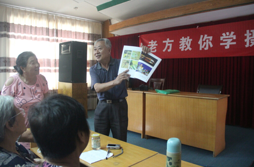 8月2日下午,在經(jīng)過半天休整之后,方老師開始為團(tuán)員們講課!拔覀兝夏耆藨(yīng)該有自己的興趣和追求,要學(xué)會自己找樂!薄艾F(xiàn)在小孩都是老年人在帶,我們學(xué)會了攝影就可以教孩子,對他們將來也有好處。”方老師的一席話,頓時就讓許多團(tuán)員萌生了學(xué)攝影的想法。接著,他向團(tuán)員們展示了自己拍攝的眾多精彩照片,并拿出一本攝影圖集供大家傳閱。“這本圖集里,都是我在老年大學(xué)教書時,學(xué)員們拍的照片。最大的學(xué)員都80多歲了,但是照片拍的特別好。相信大家通過學(xué)習(xí),也可以拍的如此精彩!狈嚼蠋煹脑,給了在座的老人極大的信心,大家也學(xué)的更加認(rèn)真。