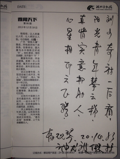 61歲的楊婆婆特有才,給方老師和手機(jī)報兩位工作人員各贈詩一首